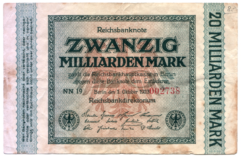 Die Ersparnisse der Menschen sind nichts mehr wert, das Vertrauen in die Regierung sinkt. 1923 erreicht die Inflation ihren Höhepunkt, sie wird zu Hyper-Inflation. Viele Menschen verlieren ihren Arbeitsplatz, es herrscht Hunger, Plünderungen stehen auf der Tagesordnung, der Schwarzmarkt floriert. Ein Brot kostet am Ende eine Billion Mark.