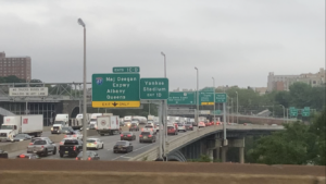 After I have familiarized myself with the many buttons and displays, we first drive into the traffic jam… then we continue past Flusching Meadows, Yankee Stadium, in the distance you can guess the skyline of Manhattan, which is in the fog – it’s hazy, gray in gray at 20 degrees. It’s 60 miles to Lake Stockholm. On the drive, at times everyone around me is asleep, it gets dark at 8pm – for us according to German time it is already 2am!