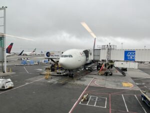 Um 5 Uhr klingelt das Handy – aufstehen für die große Abenteuer-Familienreise in die USA 2023! Und direkt wieder hinlegen: Nachricht von Delta: Der Flug verspätet sich um 3 Stunden. Aus 10:40 wird 13:48 Uhr. Also fahren wir erst später los, auch gut. So richtig schlafen kann ich aber nicht mehr.