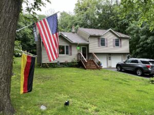 At 9 p.m. we turn onto the driveway of Hanisch’s house, a green light shines above the entrance, a German flag is hoisted for us. Liz and dog Shelly greet us, Skyler and Keith are already there. Julia quickly goes to bed – she just wants to sleep. We eat together and talk, the children gradually shed their shyness. First we arrive. At 4:30 a.m. German time we fall into bed. We made it.