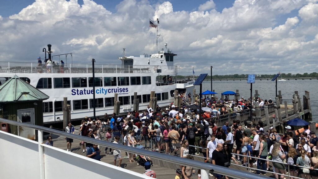 After more than an hour of driving we turn into the parking lot of Liberty Park, from here we take the ferry from the shore of New Jersey. Of course not before we have passed a tent the security check and my backpack was of course again more closely examined – this time the suntan lotion tube was supekt. Let’s put it this way: security is taken care of.