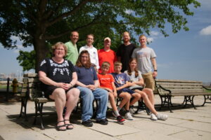 Nach einem gemeinsamen Familienfoto gehen wir wieder an Bord der Fähre, die uns nochmal zur Freiheitsstatue fährt und dann zurück nach New Jersey. Auf der Fahrt sehen wir zwei riesige Kreuzfahrtschiffe, die vom Hudson River kommend in den atlantischen Ozean in See stechen. Beeindruckend.