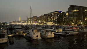 After a break at the hotel, we take two cars instead of three to „The Wharf“ where we have a dinner date with Thomas‘ (Liz and Keith’s older son) in-laws. They are originally from Italy and the mother works at the Italian Embassy. Surprisingly, Thomas‘ wife Claudia is also there. Thomas himself is stationed in Fort Lauderdale, where he is training to be a Navy fighter pilot.