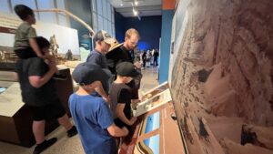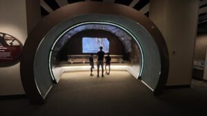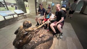 Im Naturkundemuseums trennen wir uns. Ich sehe mir mit Josephine unter anderem die Mineralien an. Dabei entdecken wir auch zwei aus Littfeld und einen aus Neunkirchen. Christian und die vier Jungs drehen derweil ein lustiges Video in der Ausstellung zur Entwicklung des Menschen.