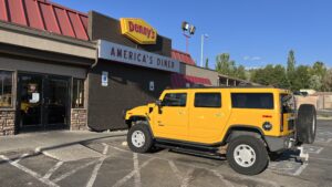 Refreshed we drive to Denny’s and eat burgers, veggie burgers and I a breaded country steak. Afterwards we treat ourselves downtown to another ice cream at „Gelato Junction“. The huge scoops of chocolate, cookies n‘ cream or Captain America really challenge us! It’s a lot, it melts and we can’t finish it all. We didn’t finish the ice cream – that hasn’t happened to us yet either! 😊 Downtown Grand Junction is totally un-American – a small, traffic-calmed street, with cafes and retailers, and sculptures every few meters, very European. On the way back to the hotel it becomes more American again – a wide street and commercial areas with car dealers and fast food chains.