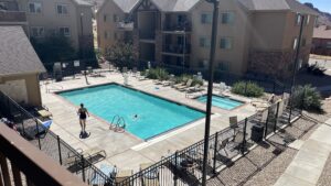 Weil es fast schon unerträglich heiß wird kühlen wir uns im klimatisierten City Market runter und kaufen dabei Angel Hair Spaghetti, Tomatensoße, gemischten Salat und Coleslaw ein, den neuen Lieblingssalat von Hannes und Erik, den sie bei Hanischs das erste mal gegessen haben. Doch bevor wir essen, springen wir zur Erfrischung alle in den Pool der Ferienanlage. Das tut gut. Erik und Hannes versuchen mich unter Wasser zu stupsen – klappt aber nicht. Dafür mache ich sie nass. 🙂