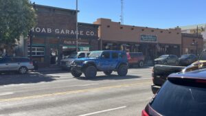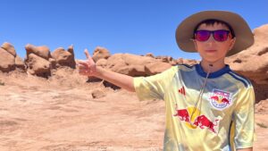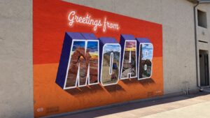 Es fällt uns allen etwas schwer Moab mit der tollen Ferienwohnung zu verlassen. Drei schöne Tage haben wir hier verbracht, jetzt stehen drei Campingtage bevor. Um halb zehn verlassen wir das Redcliff Condo, tanken nochmal voll, und legen einen kurzen Stop im Souvenirladen ein, in dem sich Josephine einen Kapuzenpullover und ich ein Shirt mit Moab Schriftzug aussuchen.