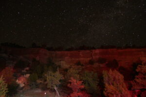 Back at the campground Hannes and Erik quickly light the campfire, because it is already quite dark. We make real s’mores, marshmallows with Herschey chocolate and crackers. Yummy! The stars slowly come out and Phine and I get great shots with long exposures.