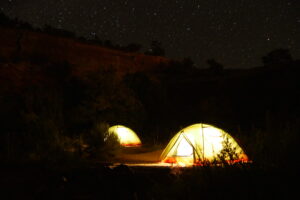 Zurück am Zeltplatz zünden Hannes und Erik schnell das Lagerfeuer an, denn ist bereits ziemlich dunkel. Wir mach echte S’mores, Marshmallows mit Herschey Schokolade und Cracker. Yummy! Die Sterne kommen langsam raus und Phine und ich erzielen tolle Aufnahmen mit Langzeitbelichtungen.