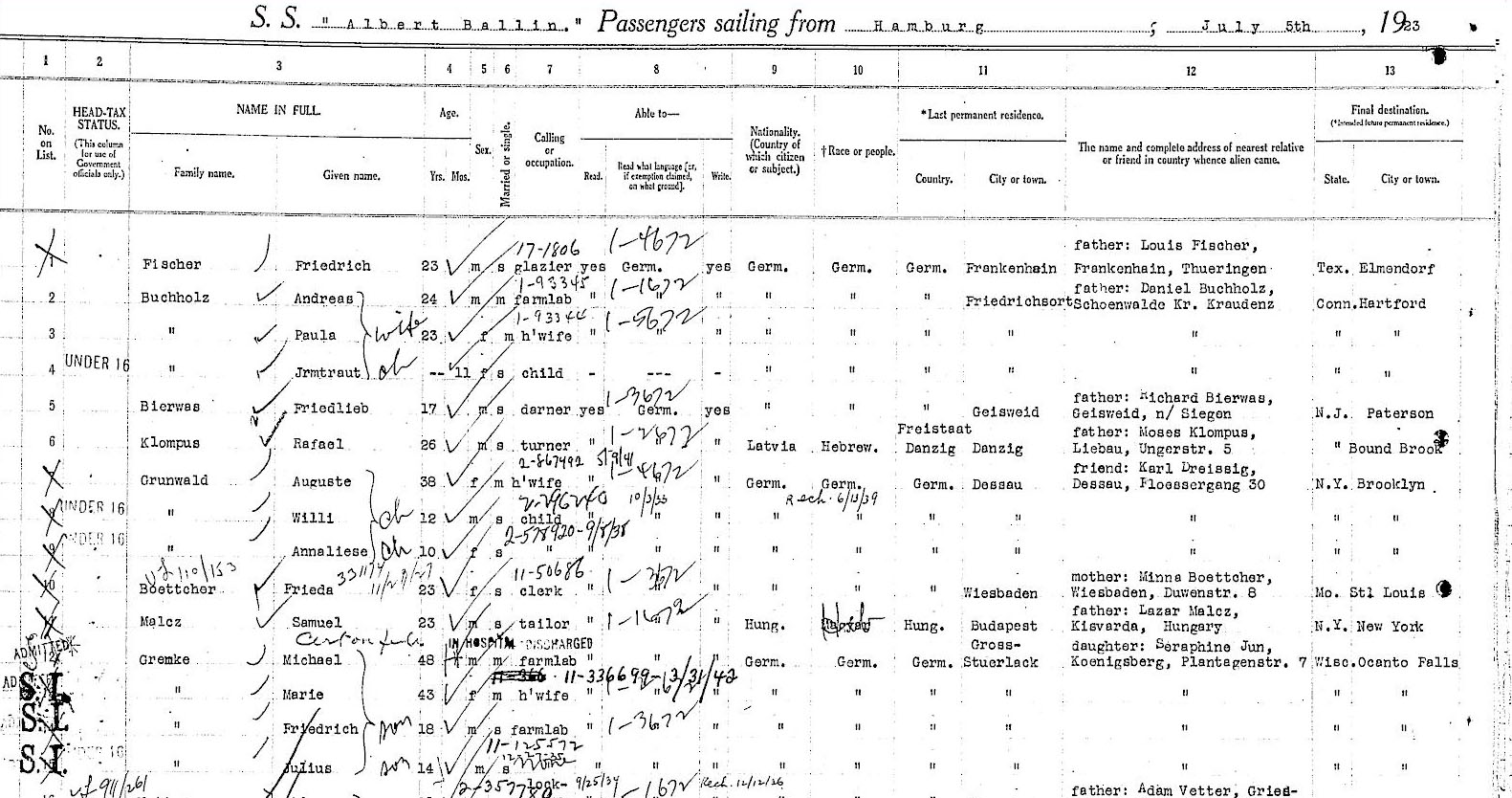 Ellis Island Passenger Record Original Ship Manifest Page 2