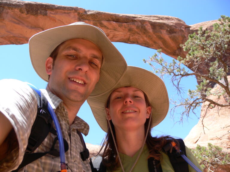 Vor dem Double-O-Arch im Arches NP, 2007.
